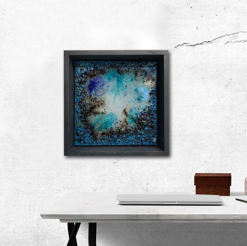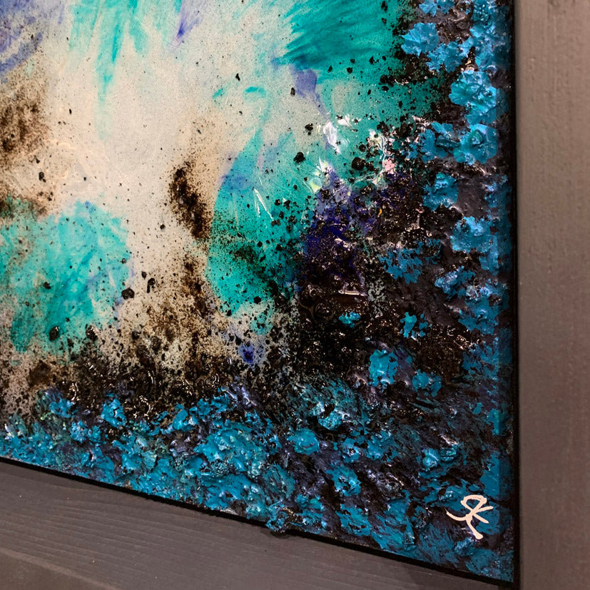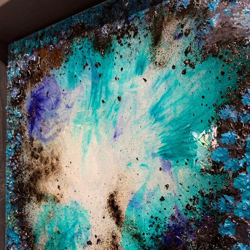 Technique : Mixte, sur toile Canvas, peinture, résine époxy.
