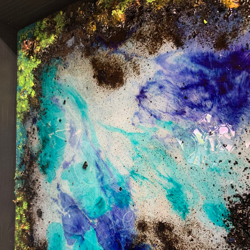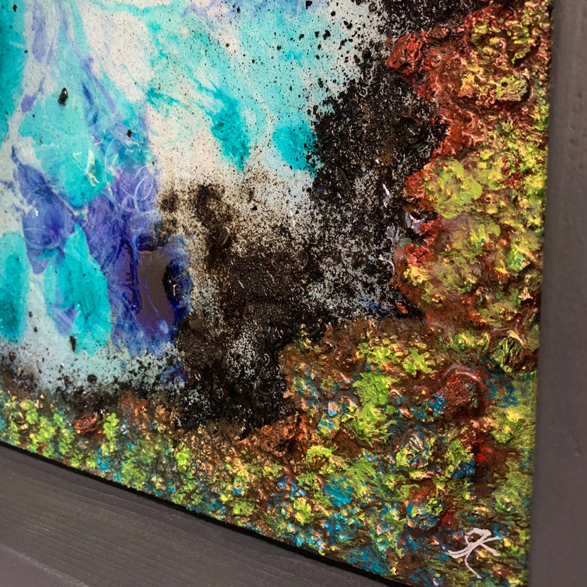Technique : Mixte, sur toile Canvas, peinture, résine époxy.