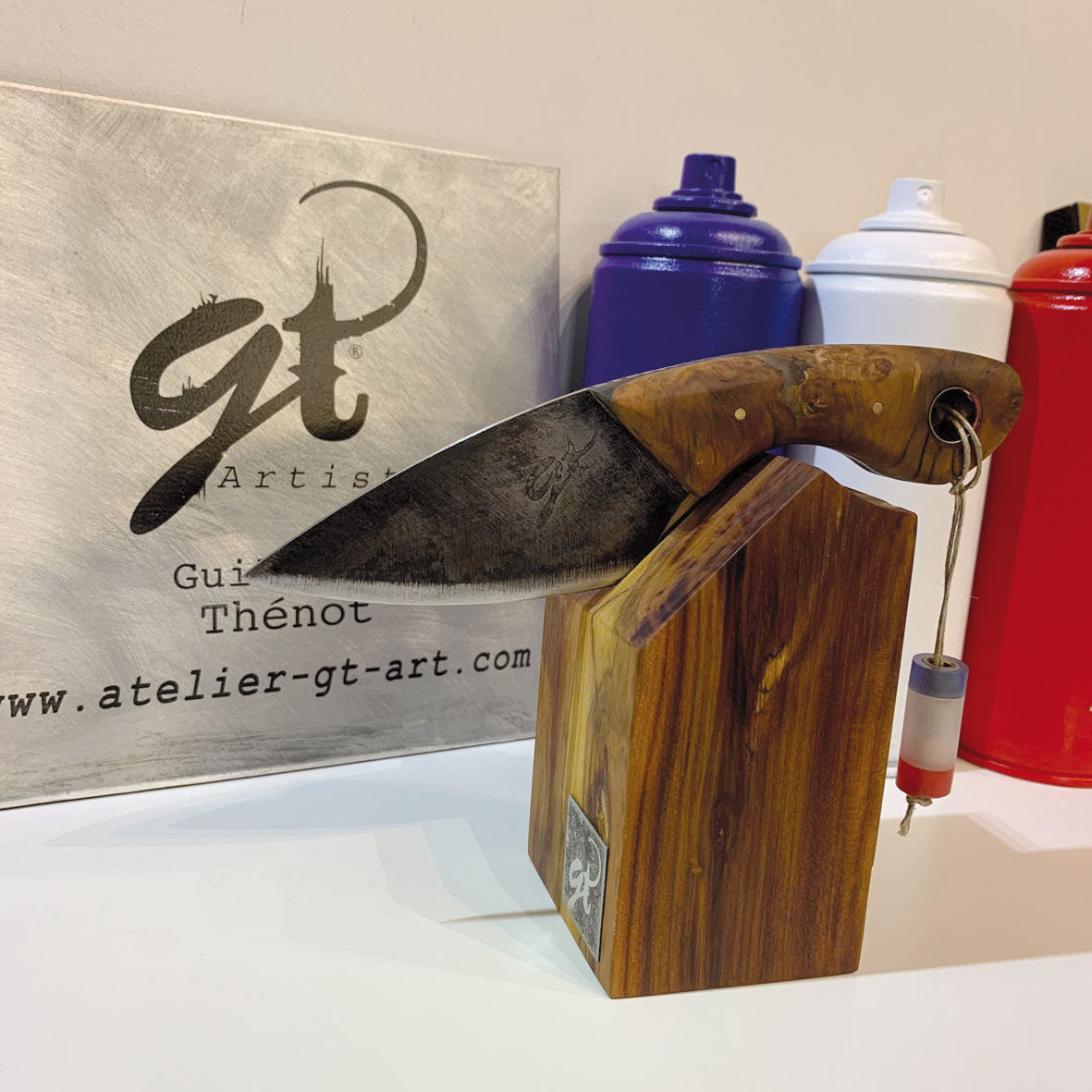 Technique : Lame acier 1095, manche huilé en bois Quetschier, laiton.