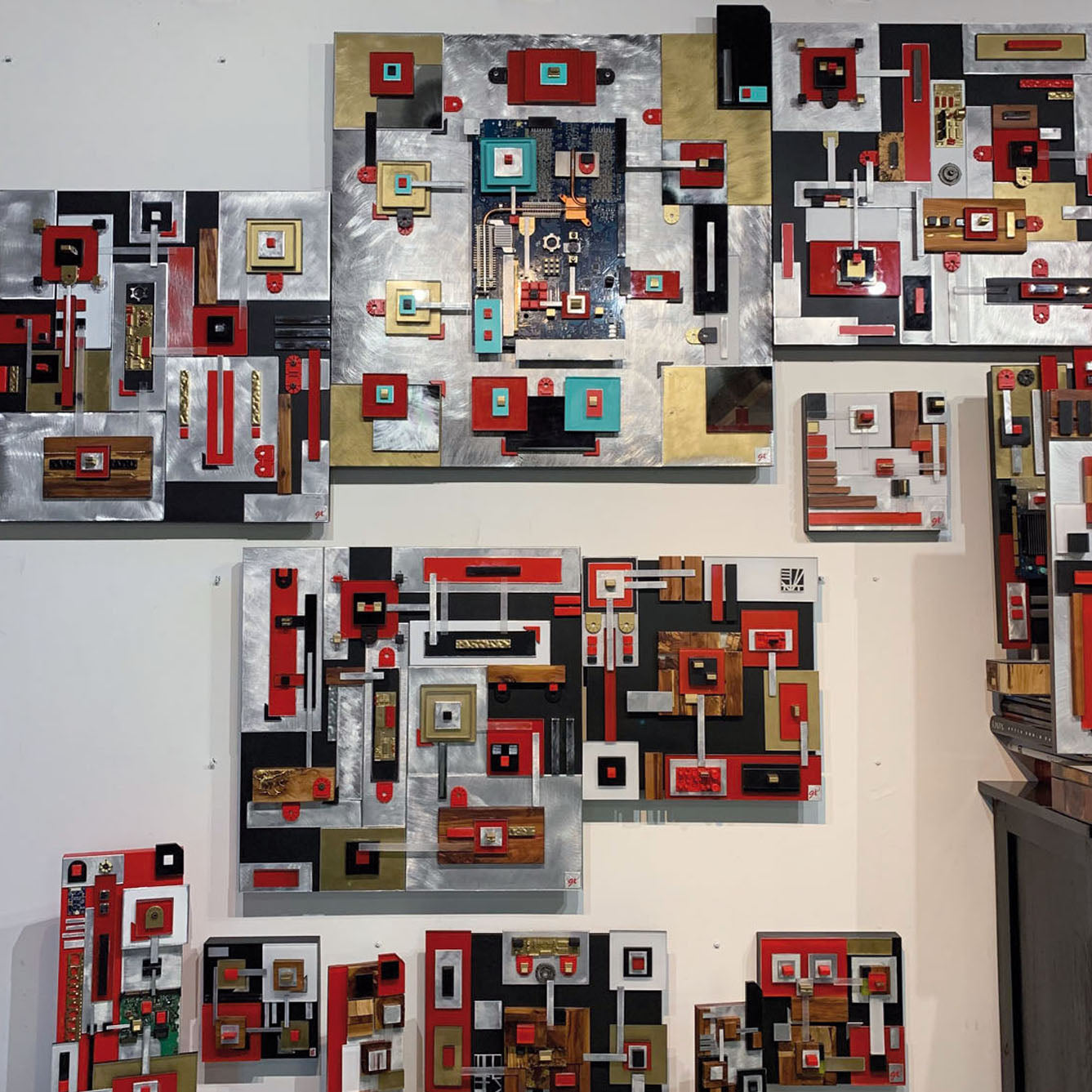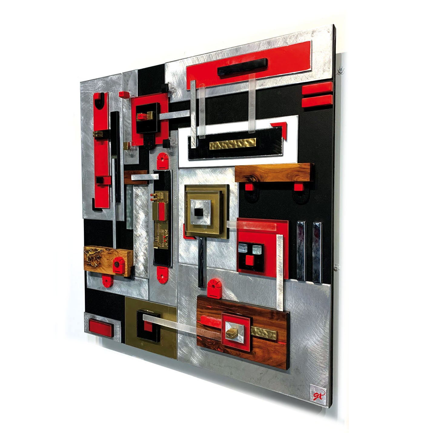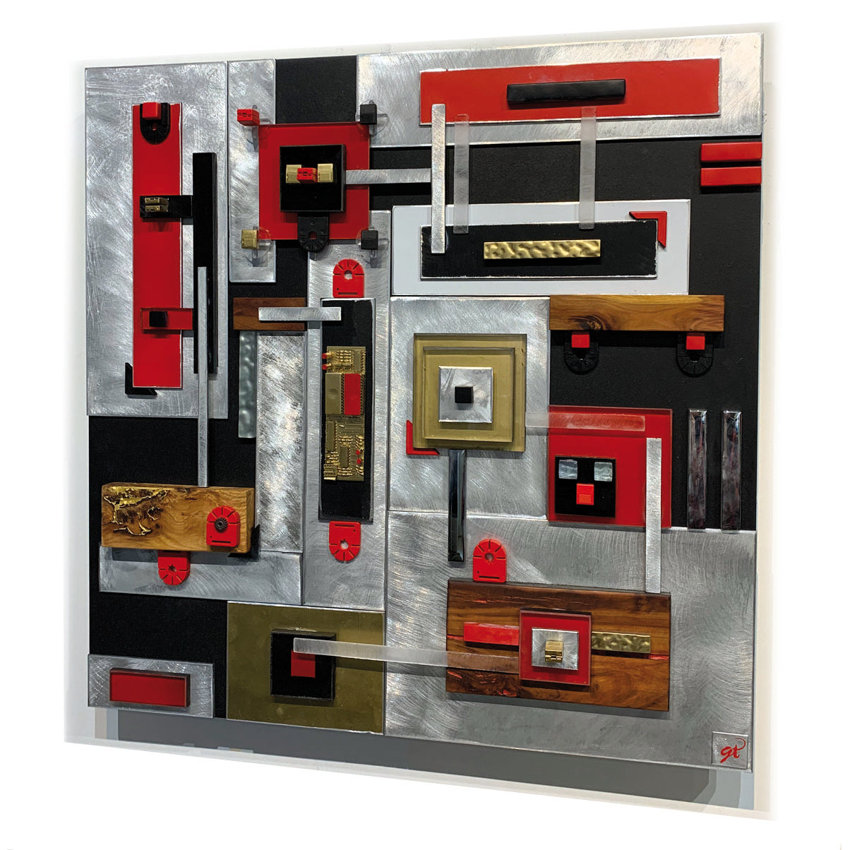 Technique : Mixte, découpe et collage aluminium brossé, plexiglas, bois,