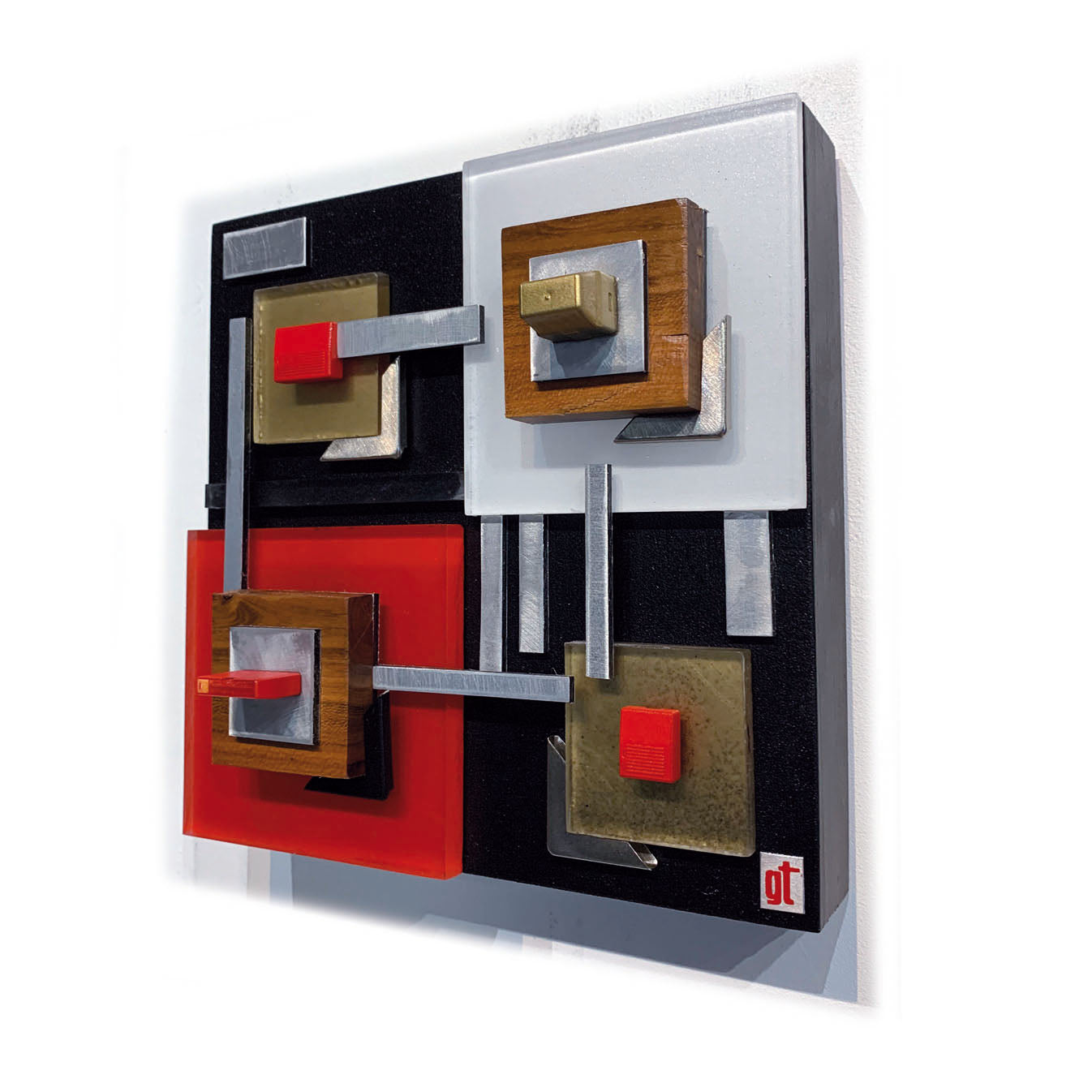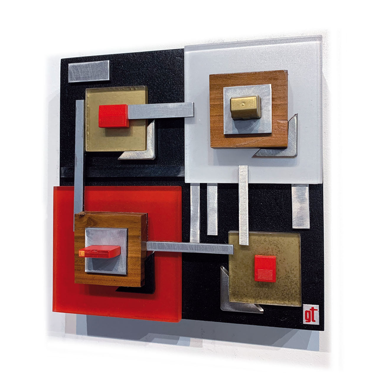 Technique : Mixte, découpe et collage aluminium brossé, plexiglass, bois,