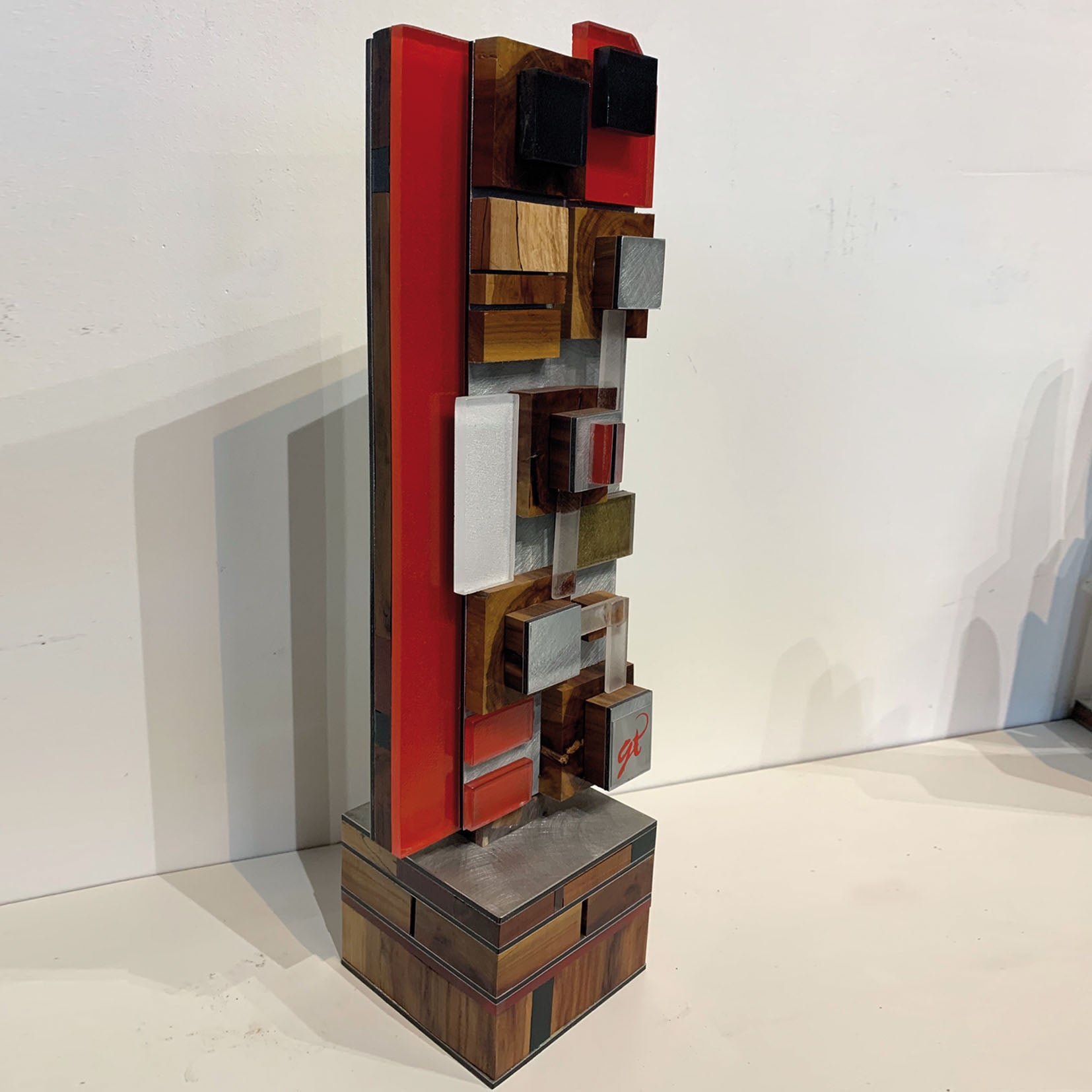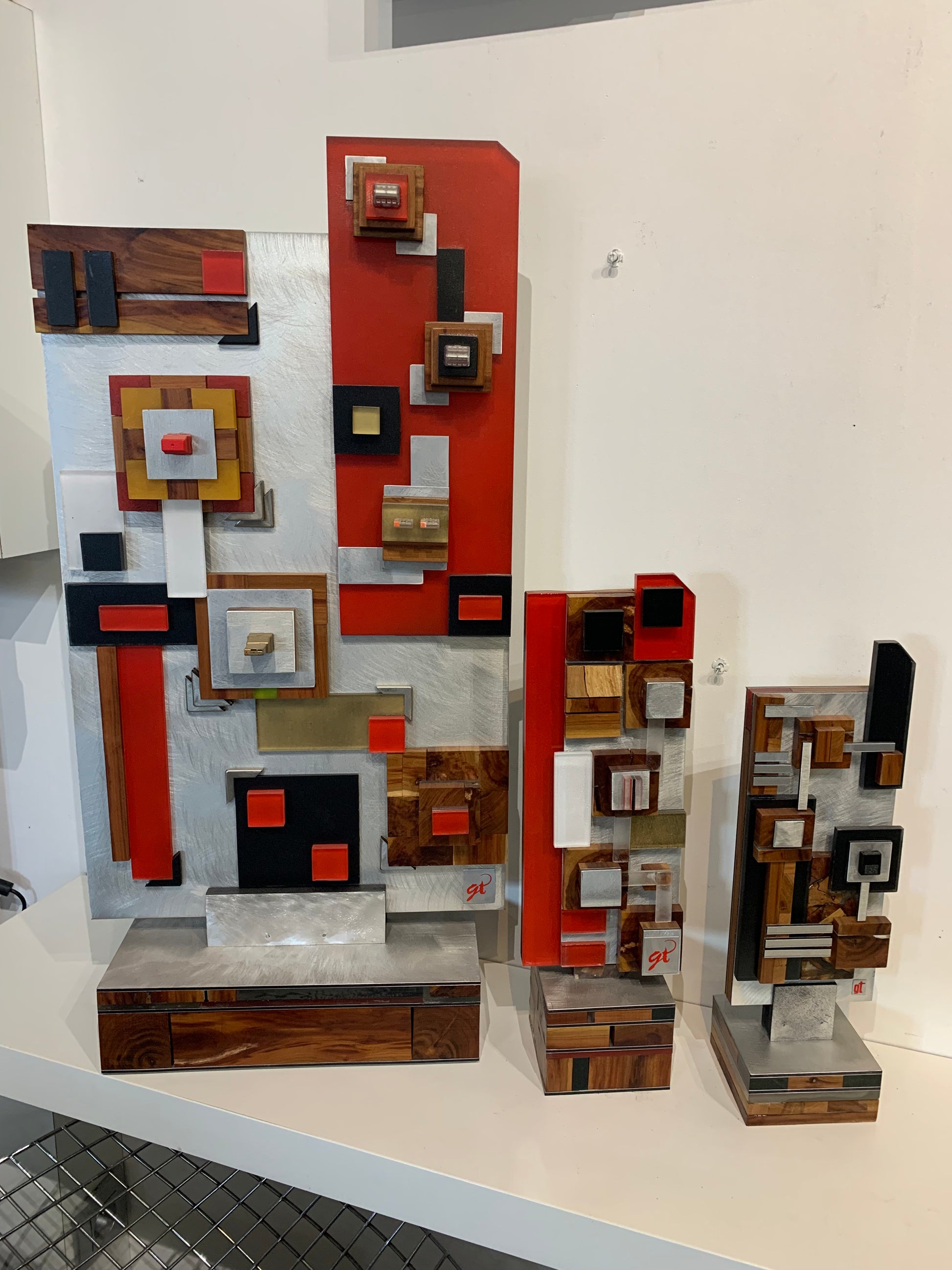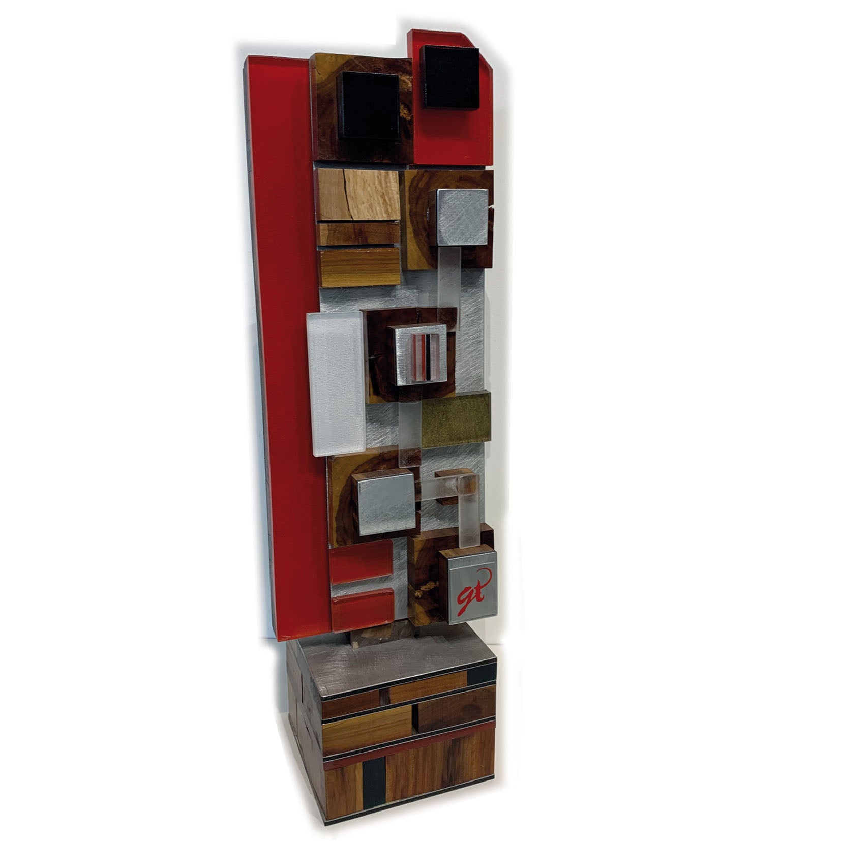 Technique : Mixte, découpe et collage aluminium brossé, plexiglass, bois, peinture.