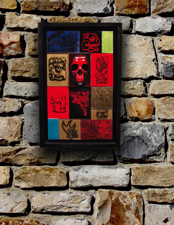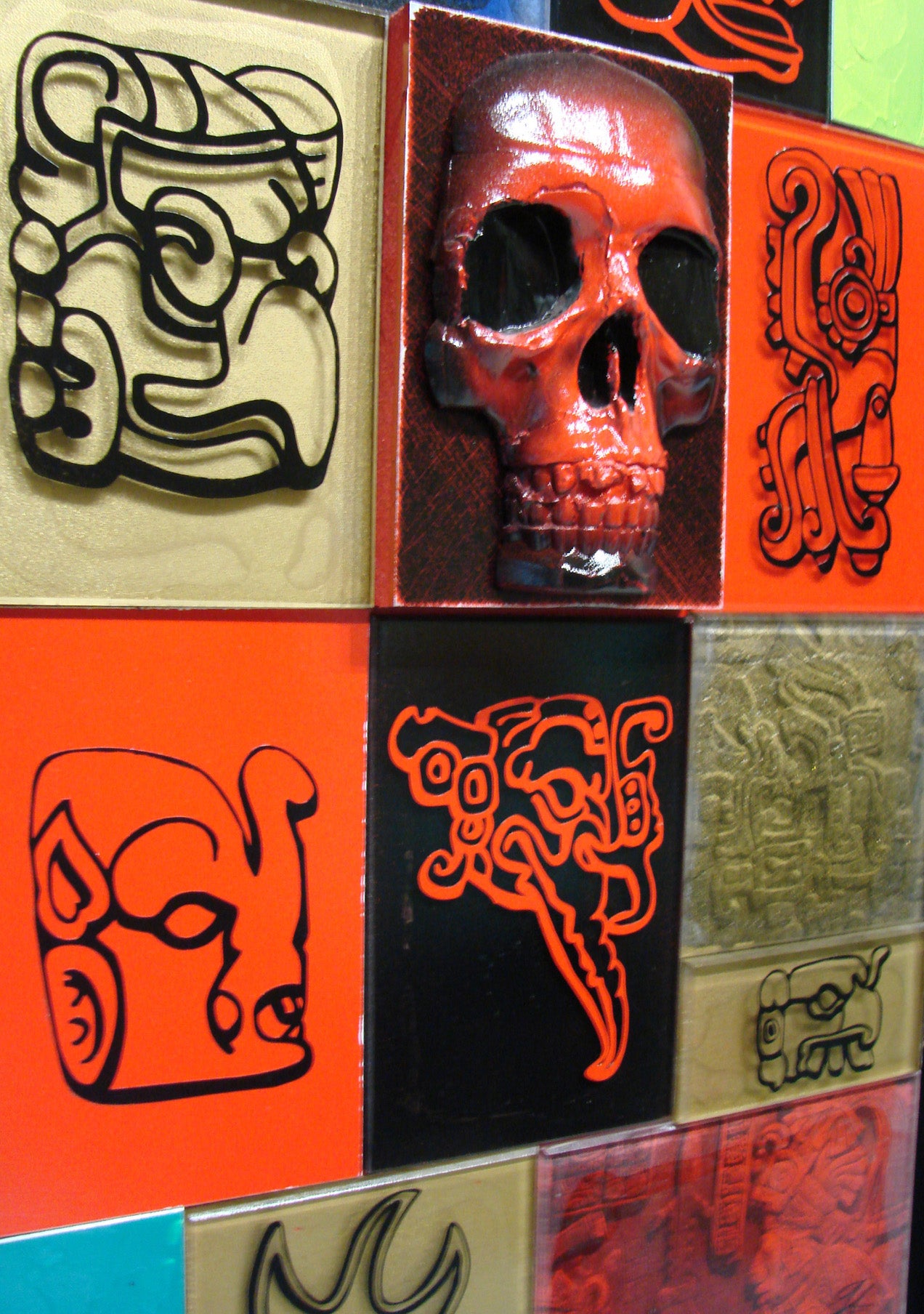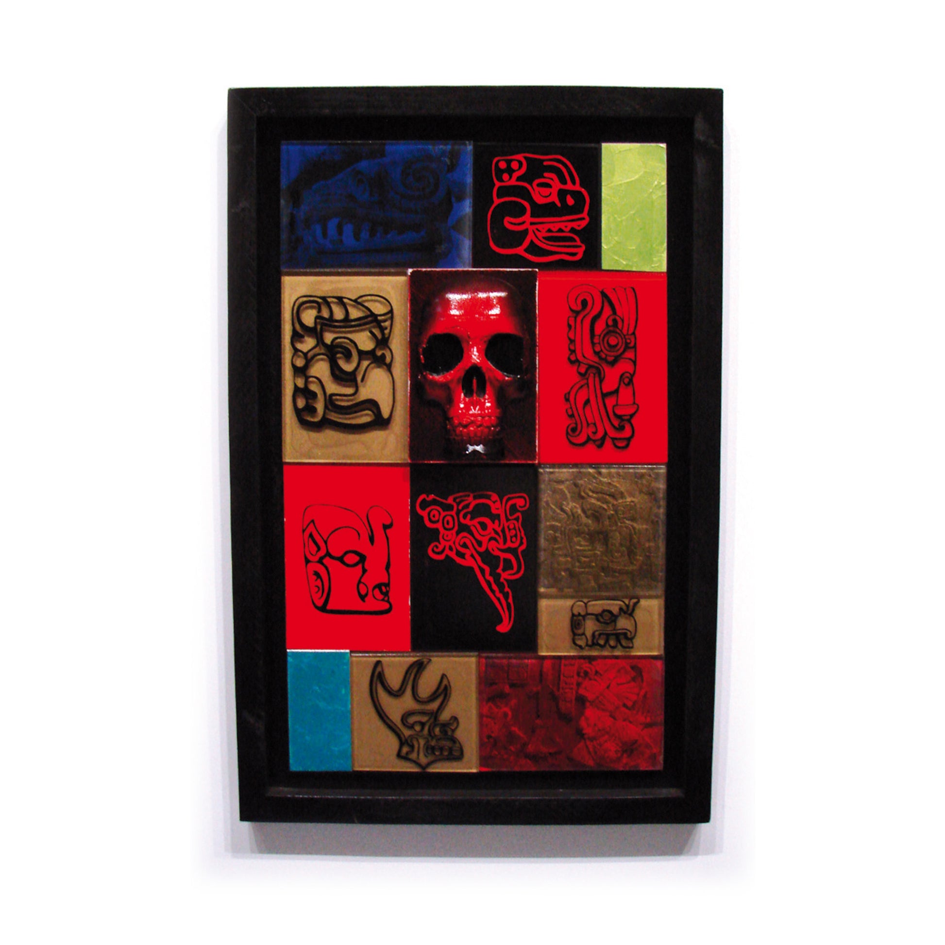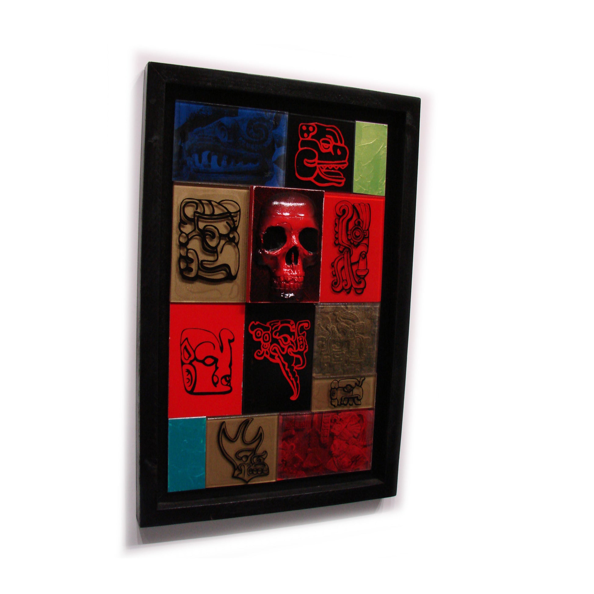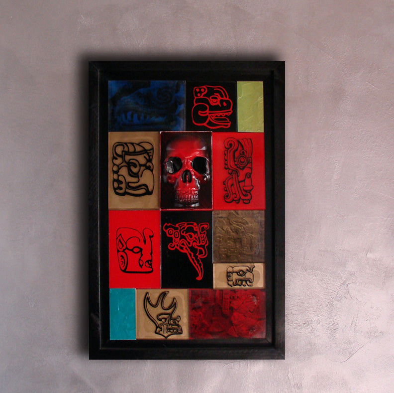 Technique : Mixte sur plexi, alu. Tête de mort plâtre, peinture aéro, Acrylique.